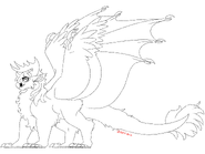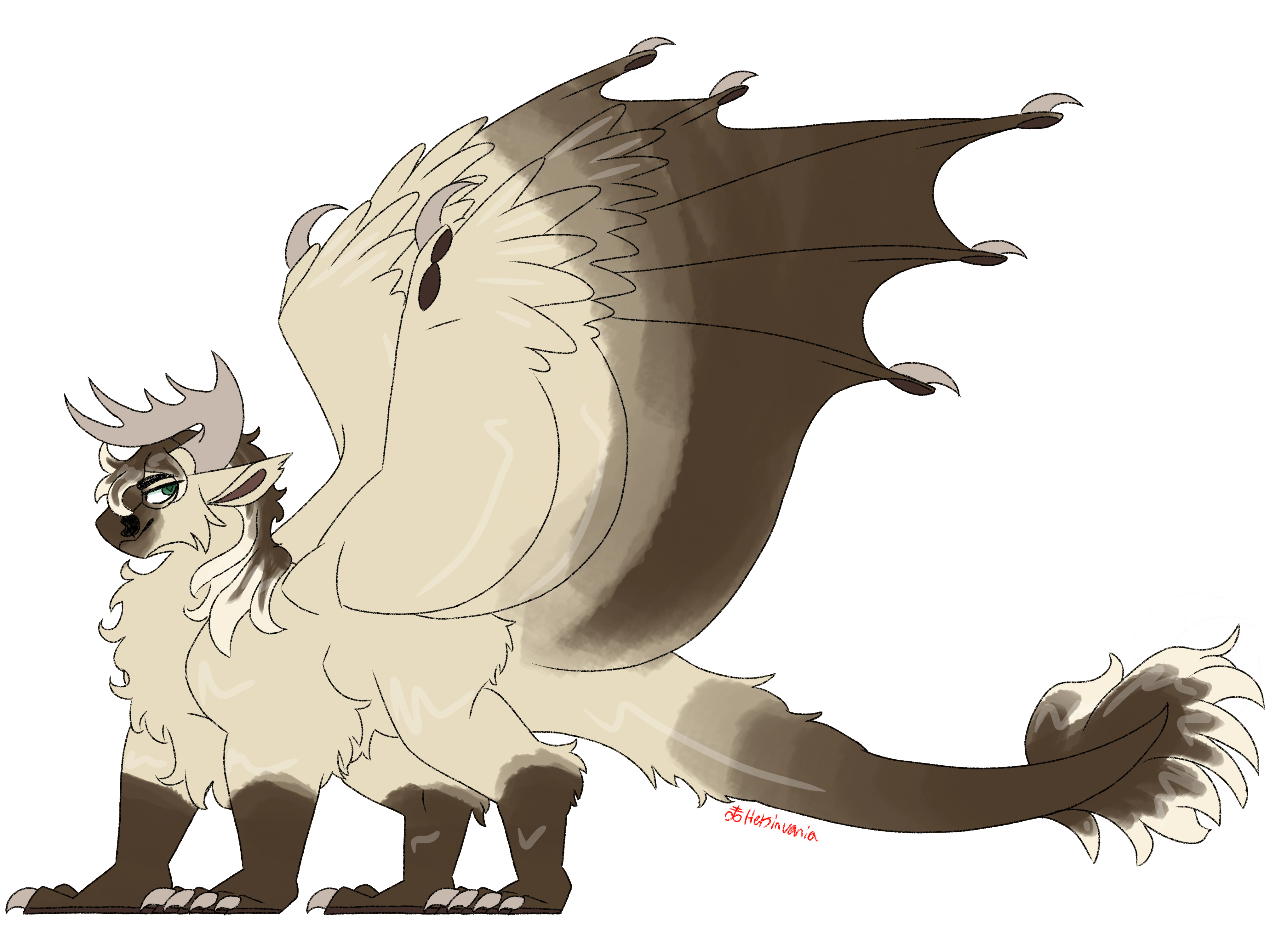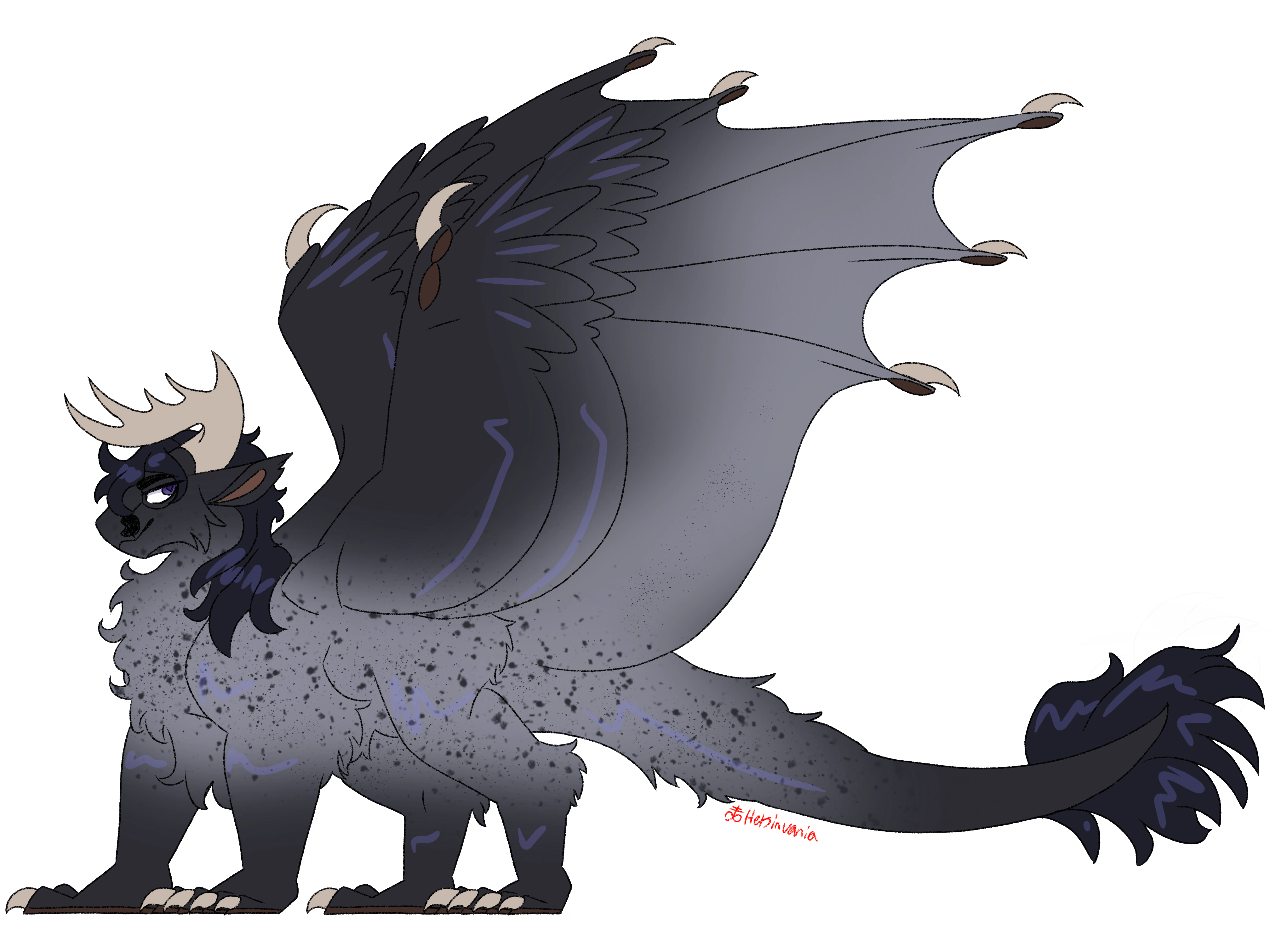 Rather than scales to protect their hide, they're covered in a pelt of rough and scratchy fur to keep them warm in their environment. They grow manes and forelocks as well as extra fur at the end of their tail. Finer fur grows long around their talons and pads to keep them warm while walking across snow. Layers of feathers start at the top of their wings to break the cold wing, soon transitioning into a normal webbed dragon wing past the feathers. Some individuals have shown to have grown fully feathered wings.
