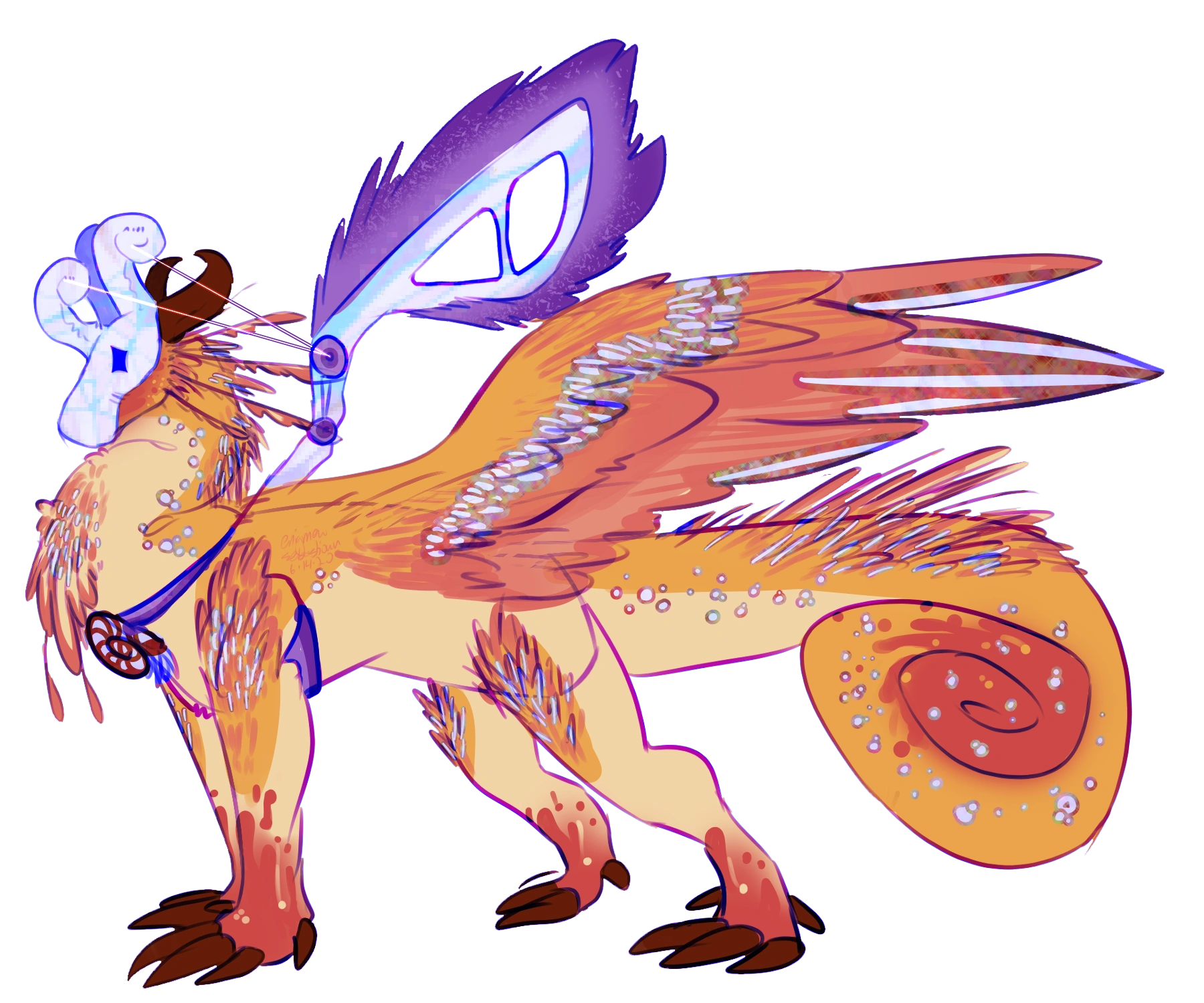 - wears decorative contraptions to go with expressing themself bc they cannot emote. (fairyfly wings, for example, that move with their posture, ergo helping them get across their emotions