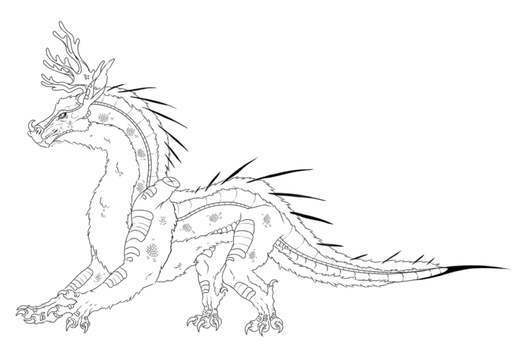 SquirrelWings have horns that typically branch out somewhat like antlers; their horns only start growing in at around age four, and their size is heavily tied to the dragon's age. Their claws are a bit longer than other tribes, and they are ridged/serrated for better traction when climbing or jumping between branches. Antlers and claws have the same colour scheme, with light ivory or bone colours, whereas spines are typically a colour similar to the rest of the coat and also tend to have a slight transparency. They are quite small on average, the smallest of the Pentheman tribes and around half the size of the largest tribes. They have short tails made more for counterbalancing short distances than in flight, proportionally large and motile ears (often tufted), and a short layer of water-repellent fur protecting their wing membranes from weather and some injuries..